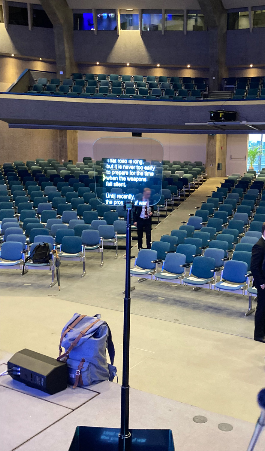 For the speaker, the text is thus easy to read even in difficult lighting conditions, while the auditorium in the first rows perceives at most a transparent pane of glass.