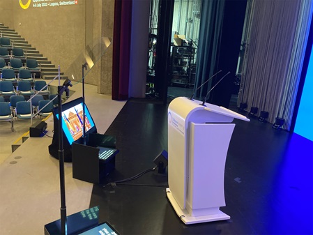 Prompter systems can be used at all large and small events, streaming events, press conferences, general meetings, laudations, party events, trainings, ad-hoc messages, medical congresses, speeches, scientific lectures etc.