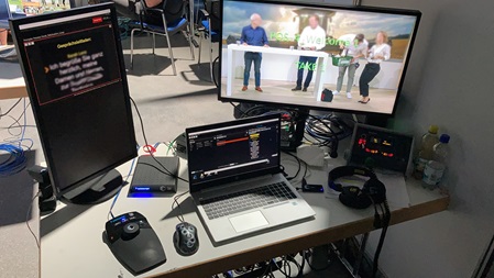 The task of a teleprompter operator is to check the text elements in order to make adjustments there, if necessary, and to make the transmission of the texts to be visualized and the playing of the text in the rhythm of the moderation during the live broadcast possible.