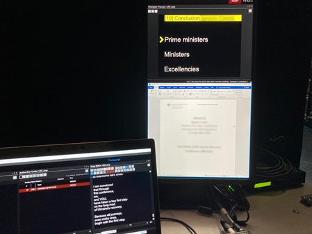 Another advantage is that the speaker never loses the "red thread" and can deliver his speech fluently. The prompter always shows him the current text passage and he does not have to search for it in his script or the moderation cards.